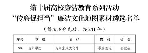 本次活动以“清风育德守初心,廉洁笃行担使命”为主题。自活动启动以来,学校党委高度重视,纪委精心统筹、广泛动员,广大师生积极响应、潜心创作,在校园内营造了崇廉、学廉、践廉的浓厚氛围。其中,体育学院创作的作品《池州学院〈话廉修德〉记》入选“话廉修德”校园征文遴选名单(该类别全国入选101件,安徽省入选9件);家风文化研究中心申报的池州家风文化馆入选“传廉促担当”廉洁文化地图素材遴选名单(该类别全国入选241件,安徽省入选5件)。